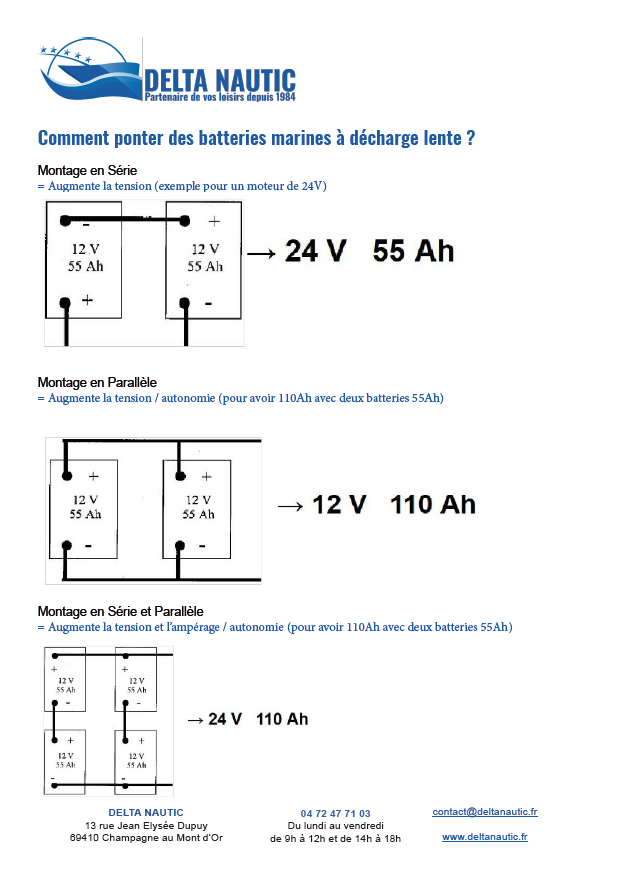 Les batteries et les chargeurs ne sont pas à prendre à la légère. Notamment quand vous changez le matériel et l'équipement de votre barque. Bienvenue donc sur la section Batteries et Chargeurs de Delta Nautic ! Vous recevrez ici de précieux conseils sur nos produits d'alimentation, leur installation, leur voltage et leur utilité.